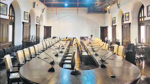The five-year term of the BMC councillors was dissolved on March 7, 2022, following which the iconic Corporation Hall and Standing Committee Hall, along with offices of the mayor, deputy mayor, leader of opposition and various civic committees, were locked and sealed. Antique warded locks with skeleton keys secured the heritage chambers, leaving them untouched for years.