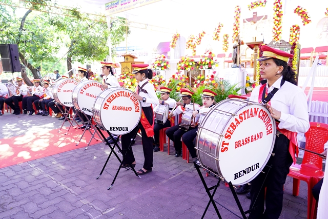 For the first time, a children-led brass band from St Sebastian Church, Bendur, accompanied the festive liturgy, adding a joyful yet solemn note to the celebration. The Infant Jesus choir, also led by children, further enriched the Eucharistic celebration, while the entire liturgy - including the readings and singing - was meaningfully animated by children themselves, making the celebration especially vibrant and prayerful.
