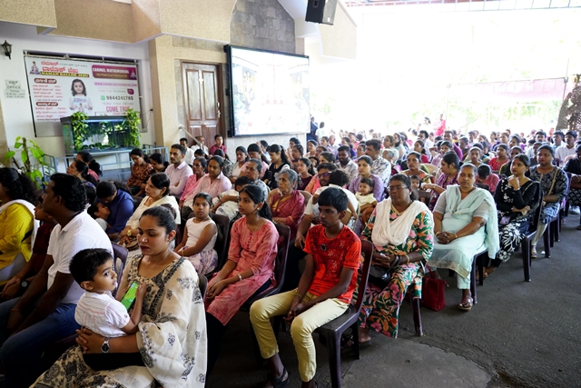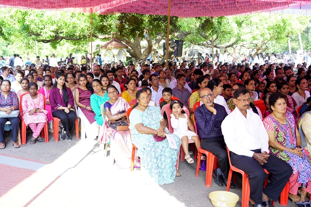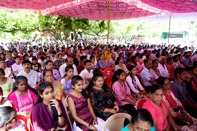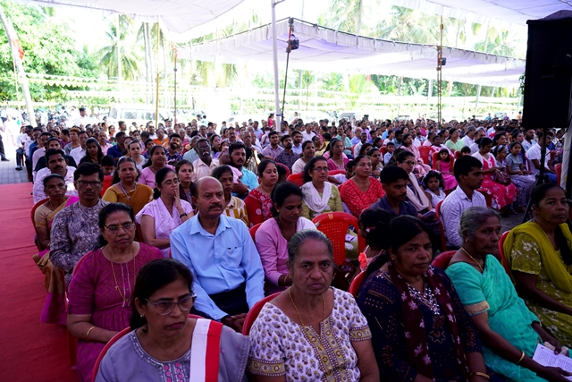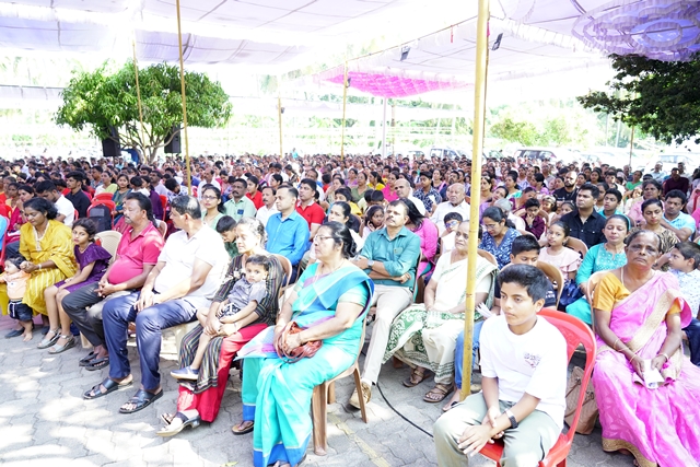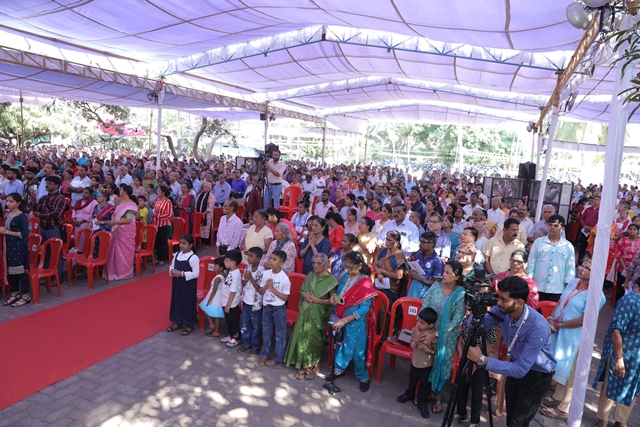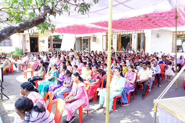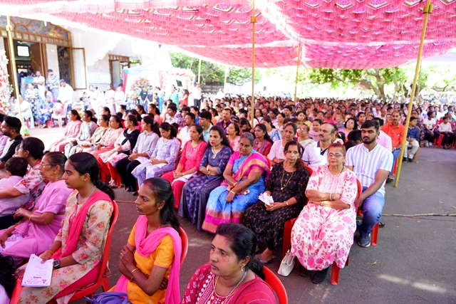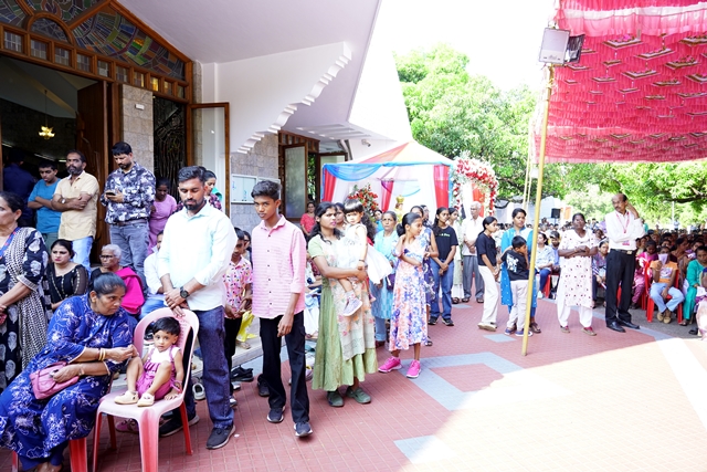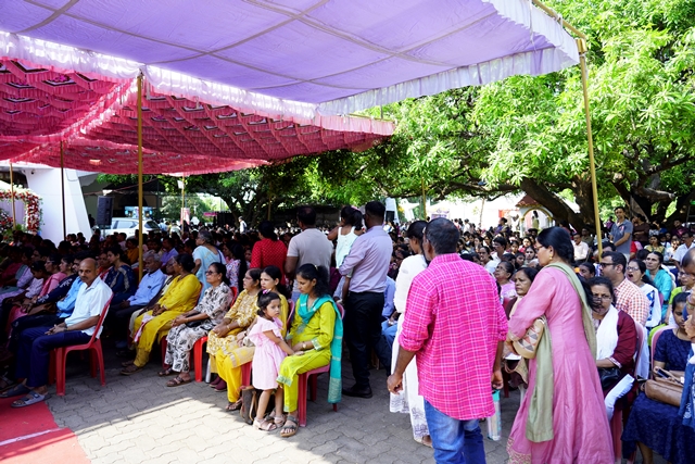 The first holy Mass of the day was celebrated by Fr Wilfred Rodrigues, OCD, from Mysuru, followed by the second Mass celebrated by Fr Clifford Rodrigues, OCD, from Bengaluru. The 1 pm Mass in Malayalam was also well attended. A large number of priests and religious sisters participated in the liturgical celebrations. As a gesture of fellowship and hospitality, Anna Santarpane (community meal) was served to all the devotees at noon.