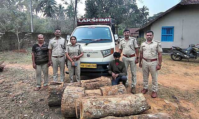 The operation was carried out on the night of January 15 based on specific information, under the guidance of the deputy conservator of forests and assistant conservator of forests of the Madikeri regional division and Madikeri sub-division. The raid was led by the range forest officer, with officials from the Sampaje forest investigation station participating in the operation.
