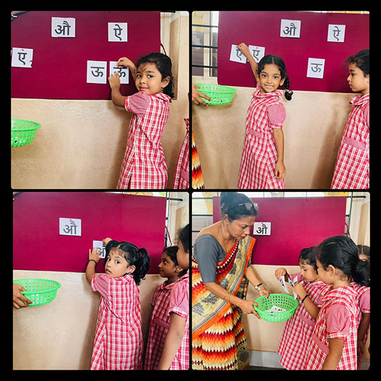 In Hindi, children actively participated in searching for letters and matching them with appropriate pictures. This activity helped develop their confidence and increased their familiarity with the Hindi script.