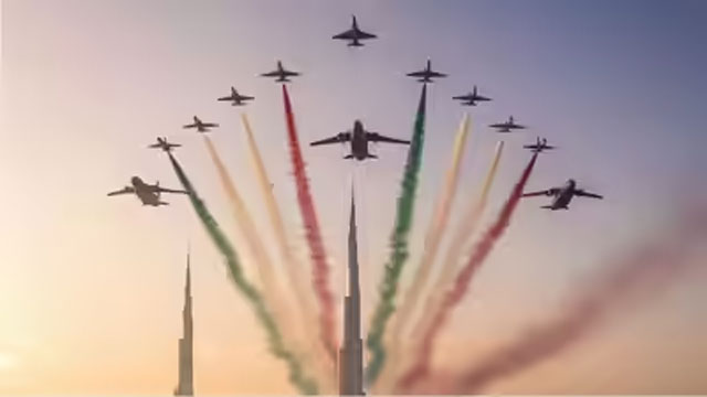 The parade will include a mix of helicopters and military jets flying in tight, coordinated formations. Select aircraft are expected to release coloured smoke trails, subject to weather and visibility conditions, highlighting the UAE flag in the sky. Defence officials said the display showcases precision flying, long-distance coordination and symbolic formations reflecting national unity.