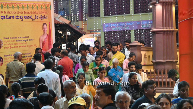 As part of the Mahotsava, annadaanam (community meals) arrangements have been made on a massive scale. Annadaanam was served to around 40,000 devotees from 7.30 pm onwards at the Sri Nityananda Swamy Temple area near the Udupi City Municipal Office and the Sri Krishna Math parking area. On January 18, a public Maha Annadaanam for nearly 50,000 devotees will be held from 11.30 am at the Sri Krishna Math parking premises.
