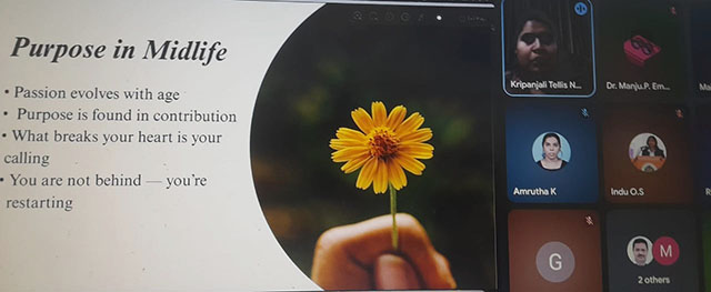 The programme aimed to create awareness about the psychological, physical, and social challenges faced during midlife and to promote holistic well-being among participants and this initiative was aligned with Sustainable Development Goal 3: Good Health and Well-Being.