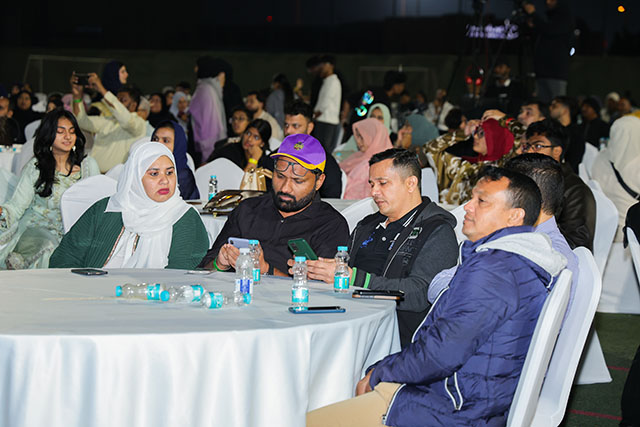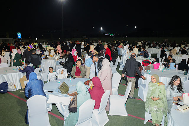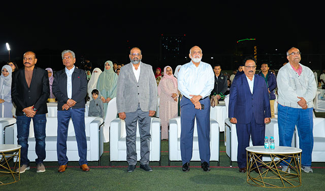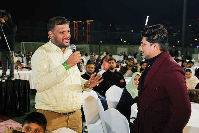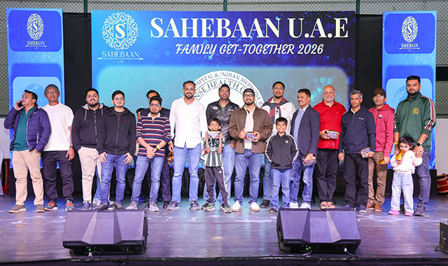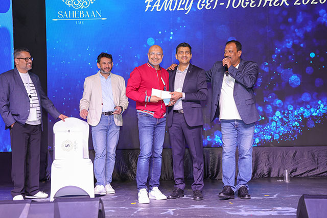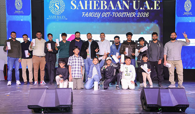 A short documentary showcasing the journey, values and achievements of Sahebaan UAE was screened on a large LED display. Videos highlighting the contributions of Hidayathullah Abbas, K S Nissar Ahmed and H M Afroz Assadi were also presented. Distribution of gifts and raffle draw prizes added to the festive spirit.