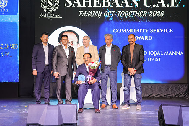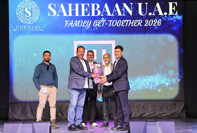 Patrons of the Sahebaan community — Hidayathullah Abbas, K S Nissar Ahmed and H M Afroz Assadi — were felicitated for their humanitarian service, charitable initiatives and unwavering support to Sahebaan UAE.