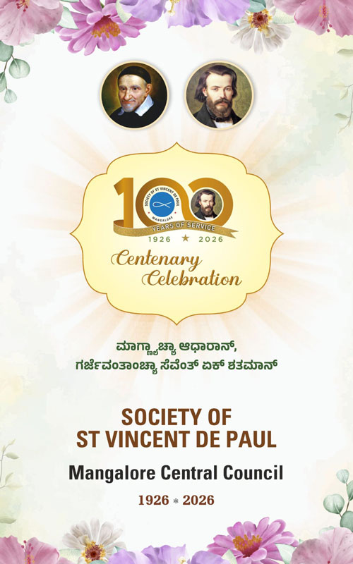 Mangaluru, Jan 22: The St Vincent De Paul Society (SVP), an international service organisation popularly known as SSVP, is celebrating 100 years of its presence in the Mangalore diocese. The centenary valedictory ceremony will be held on Sunday, January 25, at the Father Muller Convention Centre.