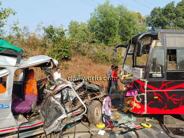Karkala, Jan 23: Three persons were killed on the spot and six others sustained serious injuries in a horrific road accident involving a private bus and an SUV near Miyar Kambala cross in Karkala taluk on Friday, January 23 afternoon.