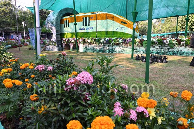 The highlight of this year’s exhibition is a stunning replica of the ‘Vande Bharat’ train, crafted entirely using colourful flowers. The replica features three coaches measuring 24 feet in length and a 30-foot-long railway track, created using a wide variety of flowers. Nearly 15,000 flowers belonging to around 30 different varieties have been used. These include salvia, chrysanthemum, globe amaranth, zinnia, dianthus, aster, vinca rosea, celosia, dahlia, petunia, torenia and several others.