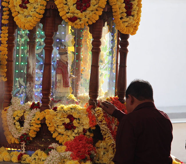 Karkala, Jan 25: The Annual Feast of St Lawrence minor Basilica, Attur began with great pomp and solemnity. The festivities commenced with a solemn procession, during which the miraculous statue of St Lawrence was taken from its original place to the place of veneration. Fr Alban D’Souza, rector of the Basilica, led the prayers during the procession.