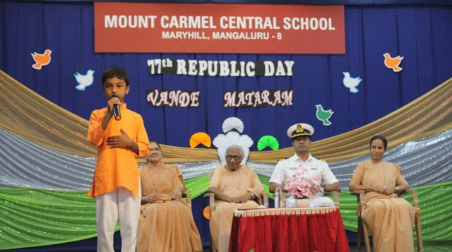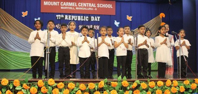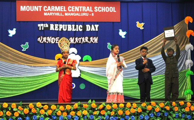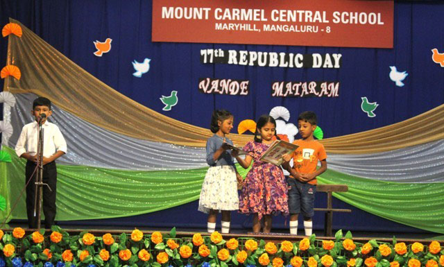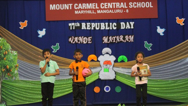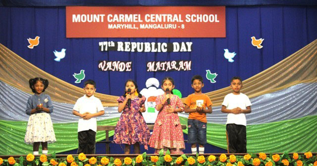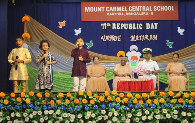 Mangaluru, Jan 25: The Primary section of Mount Carmel Central School, Mangaluru, celebrated Republic Day on January 24 with great joy and patriotic spirit. The programme was beautifully presented by the little ones of grade I B, C and D, who showed their love for the country through prayers, songs, dances and skits.