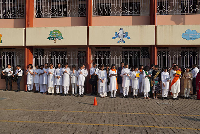 This was followed by the four school houses marching past the dais in the order of blue, green, red, and yellow. The blue house stood for discipline, loyalty, and wisdom; the green house highlighted growth, harmony, and responsibility; the red house displayed courage, strength, and leadership; while the yellow house concluded the march with optimism, enthusiasm, and positivity.