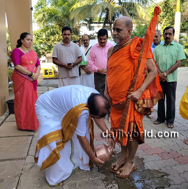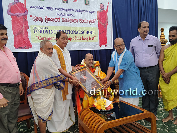 Udupi, Jan 26: Sri Sugunendra Teertha Swamiji of Puttige Math visited Kediyoor’s Lords International Residential School, Nittoor, Udupi, on January 23. On this occasion, the school management performed Paada Pooja and felicitated him.