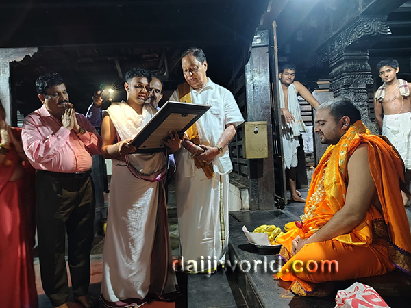 Ucchila Mahalakshmi Temple priest Vishnumurthy Acharya, Dinakar, Vishnumurthy Bhat, Diwan Nagaraj Acharya, Vilas Kumar Jain, priest Praveen Acharya, Shrisha Upadhya, Padigaru Lakshminarayana Upadhya, and others were present.