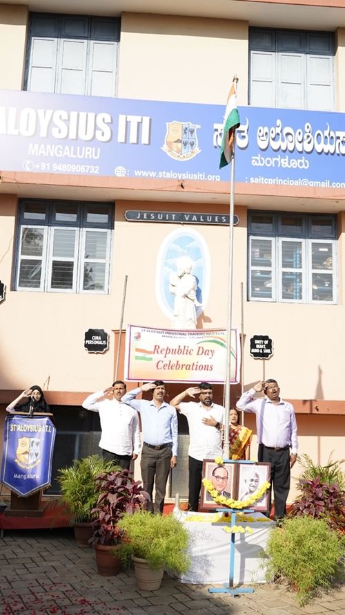 Mangaluru, Jan 26: On January 26, 2026, the 77th Republic Day was celebrated at 9 am in the institute premises of St Aloysius Industrial Training Institute, Mangaluru.