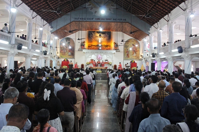 Other holy Masses during the day were celebrated by Fr Anil D’Souza, parish priest of Pakshikere; Fr Cyril Lobo of Divya Dhama Seminary, Moodubelle; Fr John Francis Sequeira, OCD; Fr Assisi Francis D’Almeida, secretary, KRCE, Bengaluru; Fr Joseph Martis, parish priest of Derebail; Fr Denis D’Sa, parish priest of Thottam; Fr Vijay D’Souza, principal of St Mary’s CBSE School, Udupi; and Fr Johnson Sequeira, principal of Lourdes CBSE School, Bejai.