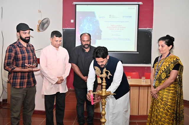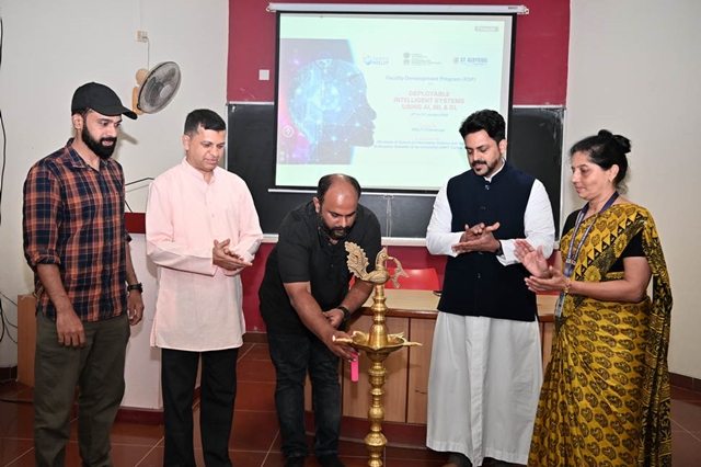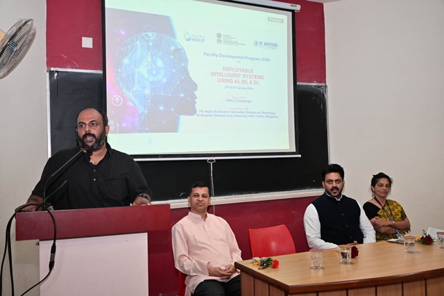 Mangaluru, Jan 27: A five-day Faculty Development Program (FDP) titled “Deployable Intelligent Systems Using AI, ML & DL” was organized by the National Institute of Electronics and Information Technology (NIELIT), Chitradurga, in association with the PG Department of the School of Information Science and Technology, St. Aloysius (Deemed to be University), AIMIT Centre, Mangaluru, from 27th to 31st January 2026 in blended mode, comprising two days of offline sessions held at St. Aloysius Institute of Management and Information Technology (AIMIT), Beeri, Mangaluru, followed by three days of online sessions. A total of 45 members participated in the program, including 40 participants and 5 invited guests.