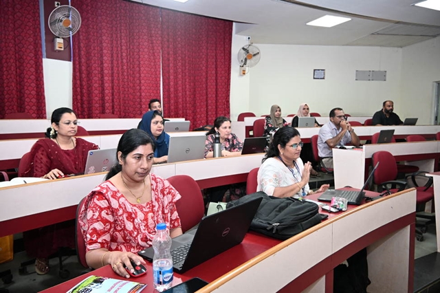 The program commenced with an invocation and lighting of the ceremonial lamp by the dignitaries. Dr Hemalatha N welcomed the gathering and emphasized the importance of continuous faculty upskilling in emerging domains such as Artificial Intelligence, Machine Learning, and Deep Learning to meet evolving academic and industry requirements.