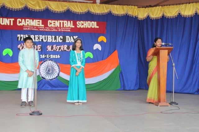 Mangaluru, Jan 27: Mount Carmel Central School, Mangaluru commemorated the 77th Republic Day with dignity and patriotic fervour through a meaningful celebration on campus.