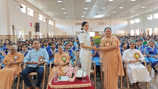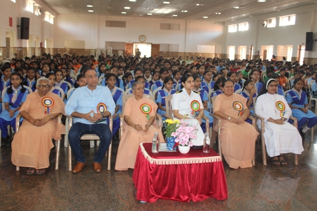 The programme commenced with a ceremonial welcome to the chief guest, asst. commandant Priya accompanied by the joint secretary Sr Josephine Pais, principal Sr Melissa, administrator Sr Carissima, superior Sr Asha Prima, vice principal Sr Teena, and PTA vice president Ananthesh Prabhu. NCC Cadets Yohan Mathew and Johan Saji escorted the dignitaries while the school band added grace and splendour to the occasion.