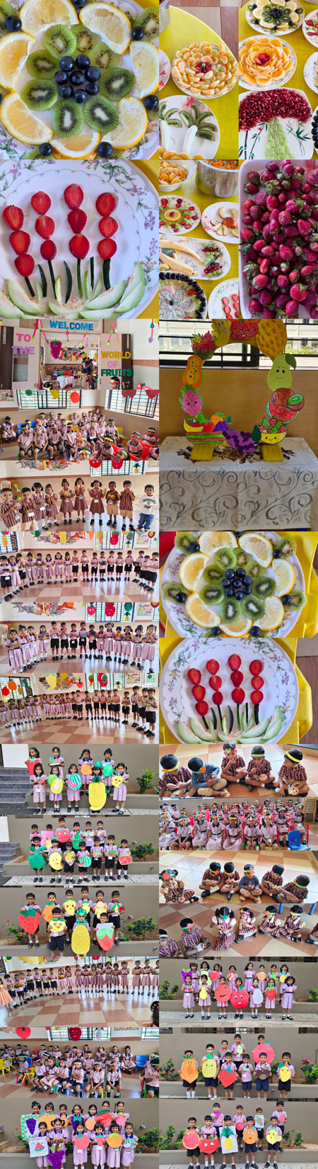 The celebration began with a prayer and a prayer song, setting a cheerful and positive tone for the day. Children confidently spoke about different fruits, shared interesting facts, and sang fun rhymes, making the programme both educational and enjoyable. They also brought bright and colourful pictures of fruits, which were beautifully displayed and decorated in the classrooms. Teachers added their creative touch with fruit-themed decorations, transforming the classrooms into fun-filled fruity spaces.