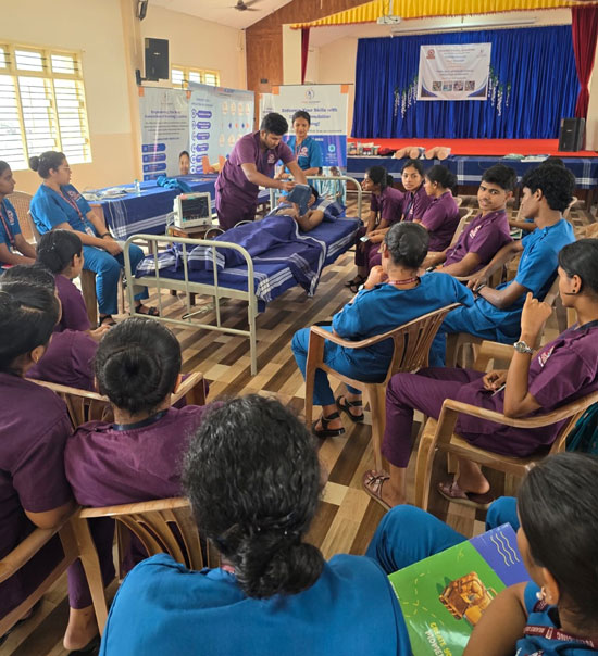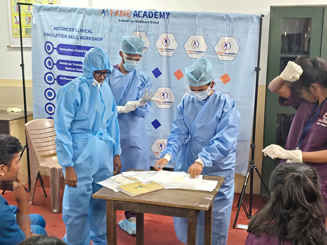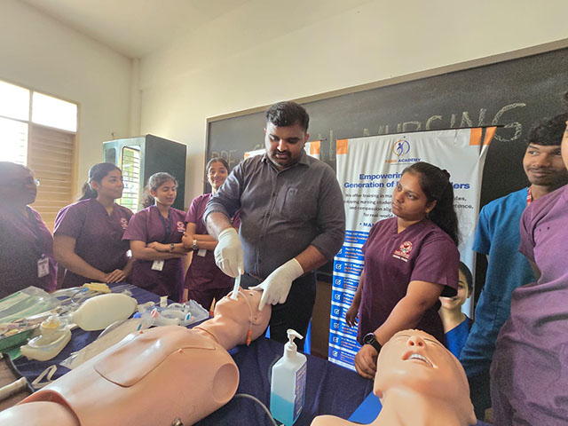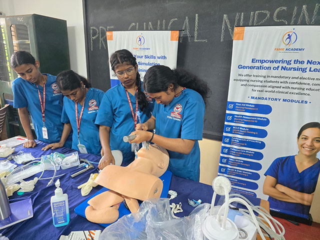Raghu B G, director of FAME Academy, addressed the gathering and stressed the role of simulation education in modern nursing practice. The training sessions were conducted by experienced simulation educators from FAME Academy, including Rajashekar, intensive care specialist, and Rahul Waliker, simulation instructor.
