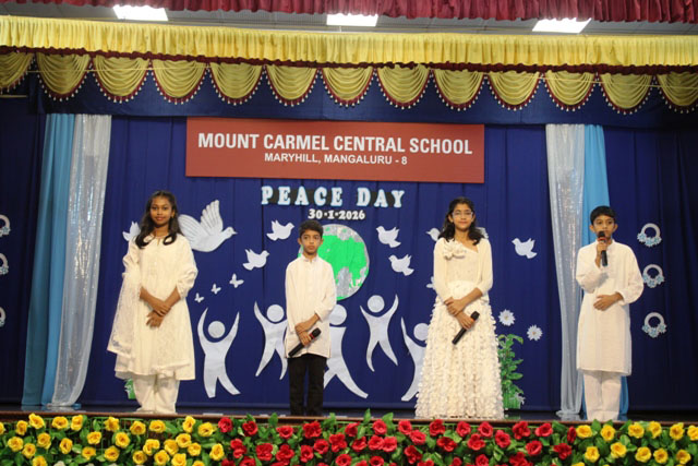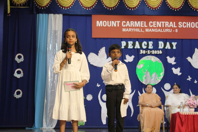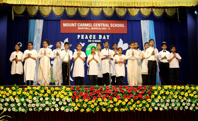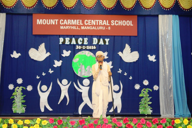 Mangaluru, Jan 30: Mount Carmel Central School, Mangaluru solemnly observed Peace Day and Martyrs’ Day on January 30, marking the death anniversary of Mahatma Gandhi and paying heartfelt tribute to the brave martyrs who laid down their lives for the nation. The observance was marked by deep reverence, patriotism, and a strong call to live by the values of peace and compassion.