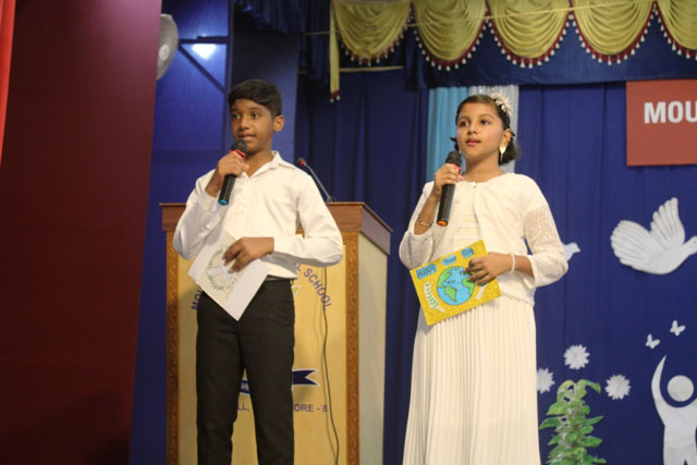 Principal, Sr Melissa, in her address, appreciated the well-organised programme by grade 6D and 5C, and reiterated that peace extends beyond human relationships to include care for nature and all living creatures. She encouraged students to avoid wastage of resources, protect the environment, and live by the principle of 'Live and let live'. She concluded by urging everyone to honour the sacrifices of the martyrs by striving to build a peaceful and harmonious India.