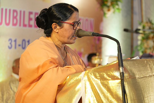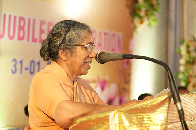 With hearts filled with gratitude to God, the Eucharistic celebration was held on Saturday, 31 January, officiated by Fr Maxim L Noronha, vicar general of the diocese of Mangalore. In his homily, Fr Maxim quoted Pope Francis: “What would the Church be without religious sisters and consecrated laywomen? The Church cannot be understood without them.” He expressed deep appreciation for the sisters’ dedicated service over the past 50 years to the poor, the marginalized, and neglected children, especially through their commitment to education in and around Vamanjoor.