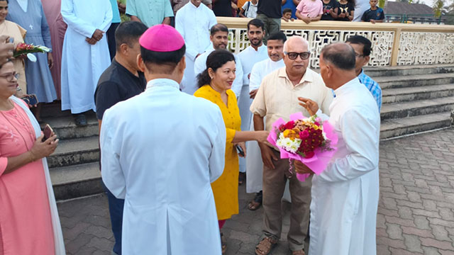 On behalf of the parishioners and the Parish Pastoral Council, Msgr Dr Leslie D’Souza was accorded a warm welcome and honoured with a bouquet. Addressing the gathering, outgoing Bishop of the Udupi Diocese Dr Gerald Isaac Lobo offered his blessings and congratulated the bishop-designate.
