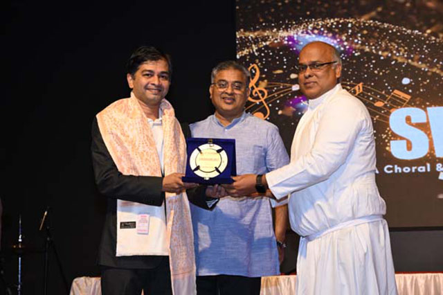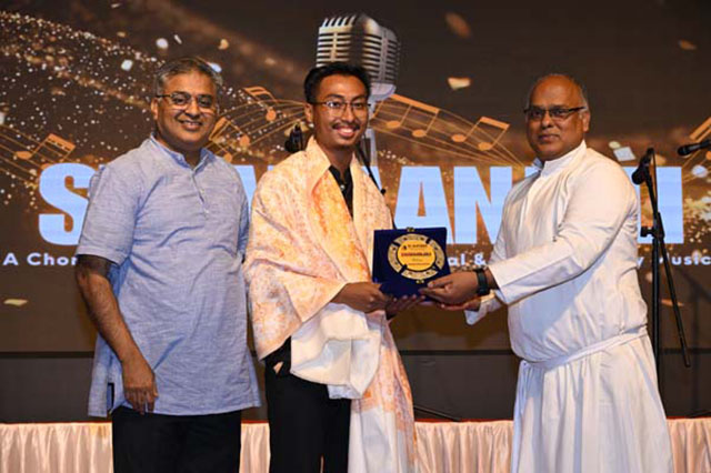 During the programme the music directors of all the teams were felicitated by the rector Fr Melwin J Pinto SJ and Dr Melwyn D’Cunha, SJ, Pro-VC of St Aloysius University.