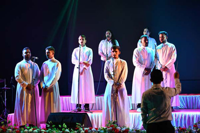 After the felicitation, Balmatta Musical Association Choir presented We Will Rejoice (Easter Anthem, Caleb Simper), God Is Still On His Throne (Kittie L Suffield) / Glory In The Highest (Chorus from George Frideric Handel's oratorio Messiah, 1741). The NEPAM Choir presented Northeastern Chimes (In Paite and Tangkhul). St Aloysius University Choir presented QUEEN Medley (Freddie Mercury, Brian May, Roger Taylor & John Deacon). After that, Rachel Priyanka Furtado performed Let It Go (Idina Menzel). Balmatta Musical Association Orchestra presented He's Everything to Me (Ralph Carmichael). Lastly a Congregational Hymn - Nearer My God to Thee (Sarah Flower Adams / Lowell Mason) was presented.