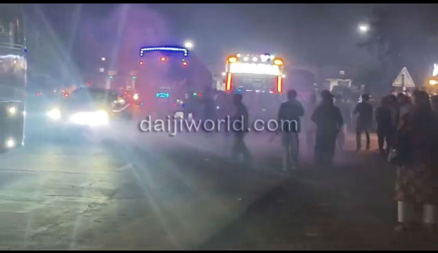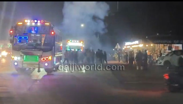 The students, who had arrived in Udupi on a leisure trip, came in two buses from Kerala. According to reports, the buses were halted near the toll gate, after which the students stepped onto the road and began dancing and bursting crackers, causing inconvenience to motorists and disrupting traffic movement.