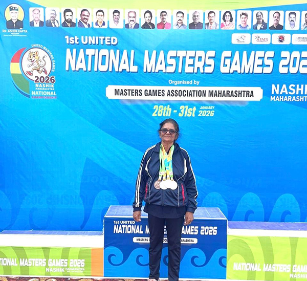 The national-level sports meet was organized by the Masters Games Association Maharashtra from January 28 to 31. Competing in the 65+ age category, Jaya Tantri showcased exceptional talent and determination across multiple events.