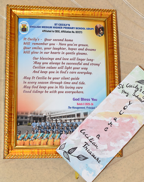 Udupi, Feb 4: Students of Grade 10 bade au revoir to their school days at St Cecily’s English Medium Higher Primary School (CBSE)with a formal farewell programme hosted by Grade 9 students on February 3.