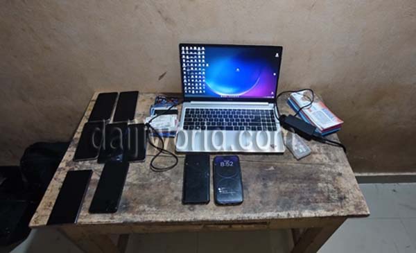 Police have seized one laptop, 21 mobile phones, 20 SIM cards of various companies, and 20 debit and credit cards from different banks.