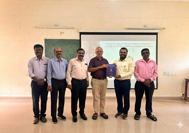 Mangaluru, Feb 7: Venkatesha Nayak submitted his doctoral thesis titled ‘Financial Inclusion in Koraga Community – A Case Study of Dakshina Kannada District’. The study analyses the extent, challenges, and outcomes of financial inclusion initiatives among the Koraga community, a Particularly Vulnerable Tribal Group (PVTG), and offers policy-relevant insights for inclusive development in Dakshina Kannada district.