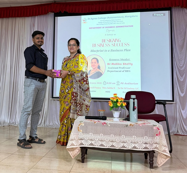 Mangaluru, Feb 9: The Department of Business Administration, St Agnes College (Autonomous), Mangaluru, organised a seminar titled “Designing Business Success: Blueprint to a Business Plan” and a business plan competition titled “Brain 2 Business – The Ultimate Business Challenge on February 5, at the St Agnes College Centre for Postgraduate Studies and Research for all the BBA students.
