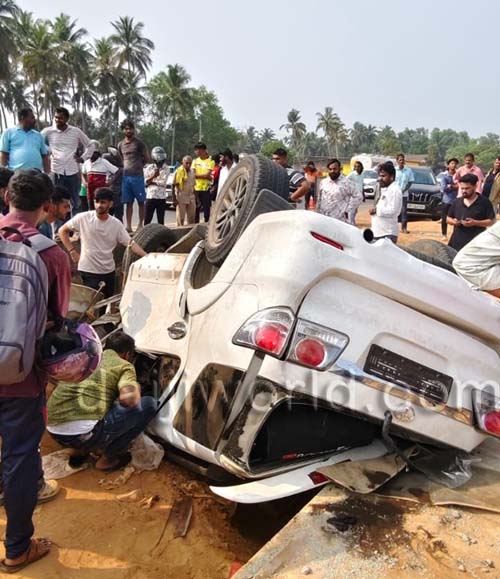 Kundapur: Fortuner overturns on NH-66 - Six students from Pune seriously injured