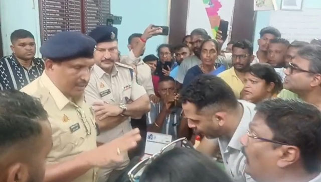 As the crowd swelled at the police station, villagers demanded an apology from PI Naik and questioned SP Desai as to why a transfer order issued against the officer last year had not been enforced.