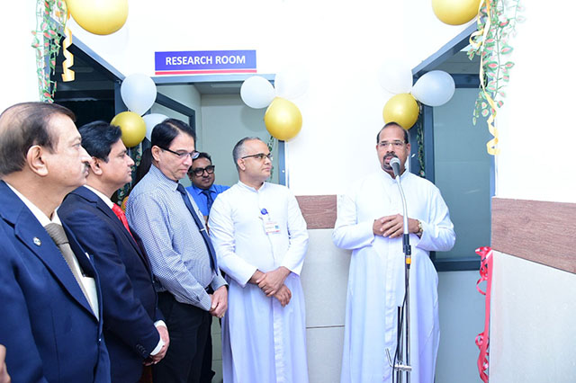 Also present for the ceremony were Dr Michael Sathumayor, administrator, Father Muller Medical College; Fr George Jeevan Sequeira, administrator, FMMCH; Fr William and Fr Rohan Dias, assistant administrators, FMMCH; Dr Antony Sylvan D’Souza, dean; Dr Venkatesh B M, vice dean; Dr Ramesh Bhat, head of FMRC; Dr Kishan Shetty, DMS; and Sr Nancy Mathias, CNO, along with invited guests, faculty, and staff.