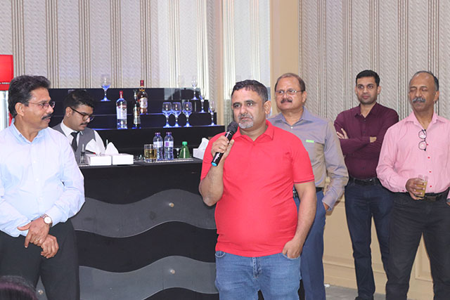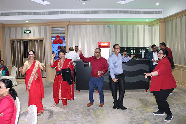 Outgoing president Arun Castelino ceremonially inducted the new president Ivan Sequeira, by pinning the badge — symbolizing the transfer of leadership. The remaining committee members were inducted by Ivan Sequeira. Each member marked their role by pinning their photograph and designation on the display board. The joyous occasion continued with a celebratory cake-cutting followed by cake served to all which was prepared by Naveen Mendonca.