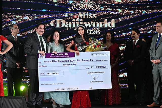Mangaluru, Feb 15: The grand finale of Hyssna Miss Daijiworld 2026 was held on February 14 at Milagres Jubilee Hall, showcasing an evening of glamour, elegance, and electrifying performances.