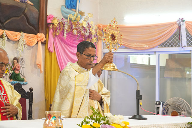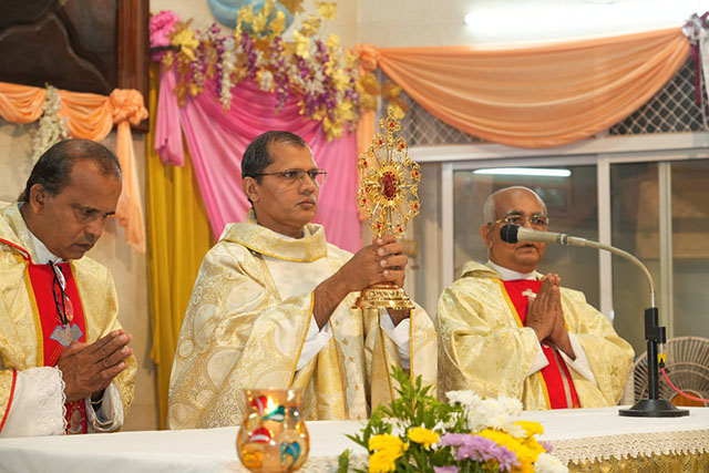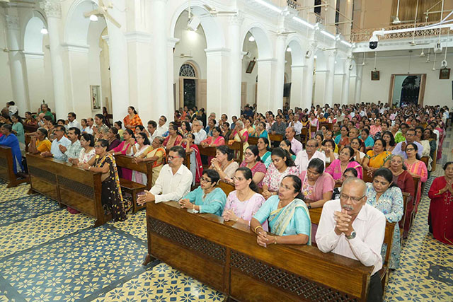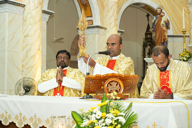 To cater to the diverse linguistic needs of the pilgrims, a special Holy Mass in Malayalam was held at the Milagres Shrine. Celebrated by Fr Eby Sebastian CST, the Mass saw a large participation from the Malayalam-speaking community of the region. Throughout the day, a sea of devotees was seen queuing up to light candles, offer petitions, and pay their respects to the Relic of St Anthony, seeking his powerful intercession.