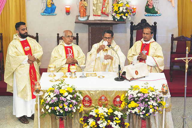 The grand Mass was concelebrated by Fr J B Crasta, director of St Anthony Ashram, Jeppu, Fr Praveen Amrith Martis, administrator, Fr Nishanth Vivian Rodrigues, assistant director, and Fr Gilbert D'Souza. They were joined by many priests from the episcopal city deanery and various religious congregations from across the city, signifying the unity of the local church in celebrating the 'Saint of Miracles’.
