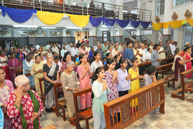 The festive spirit commenced at the break of dawn, setting a prayerful tone for the day. The celebrations began with a festal Mass at St Anthony Ashram, Jeppu, celebrated by Fr Rajesh Rosario, rector of St Joseph Seminary, Jeppu, who invoked God’s blessings upon the gathered devotees. This was followed by the solemn morning Mass at the Ashram, celebrated by Msgr Maxim L Noronha, vicar general of the diocese of Mangalore. Msgr Noronha preached an inspiring homily on the importance of holy speech within family life, urging families to be sanctuaries of truth and love.