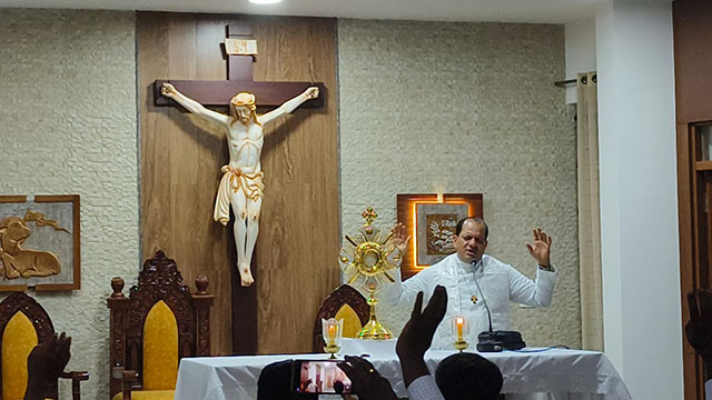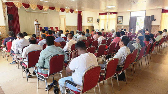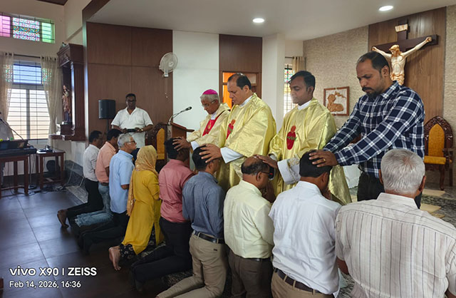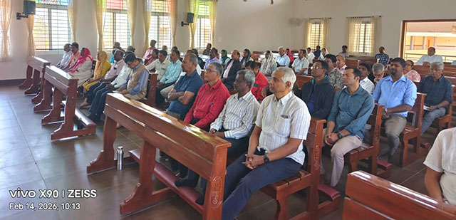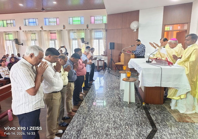 Shivamogga, Feb 16: The 4th annual orientation and training programme for Diocesan Service of Communion (DSC) leaders of the Catholic Charismatic Renewal (CCR) in Karnataka, along with the reconstitution seminar of the Karnataka Regional Service of Communion (KRSC), was successfully held from February 13 to 15 at Sannidhi, Diocesan Pastoral Center, Shimoga diocese. A total of 78 leaders, including 5 priests, from 13 DSCs across Karnataka participated.