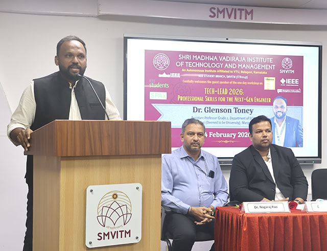 Udupi, Feb 17: The IEEE Student Branch Shri Madhwa Vadiraja Institute of Technology and Management (SMVITM), Bantakal, successfully organized 'TECH-LEAD 2026: Professional Skills for the Next-Gen Engineers', an IEEE SPAx and IEEE Foundation funded professional event, at the institute premises on Feb 14.
