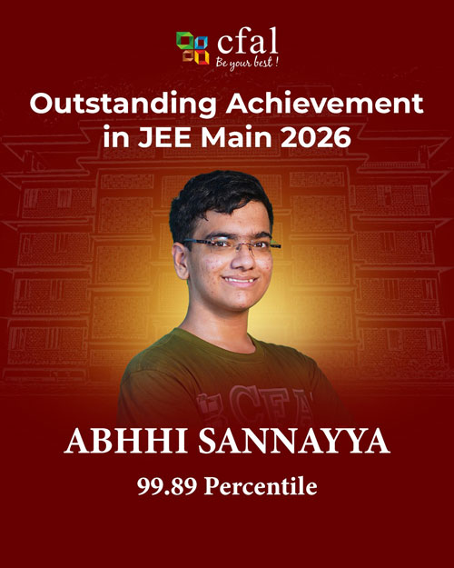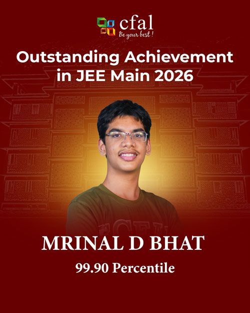 Mangaluru, Feb 18: CFAL’s top 5 averaged 99.91 percentile in JEE Main 2026 with every student scoring above 99 in all three individual subjects.