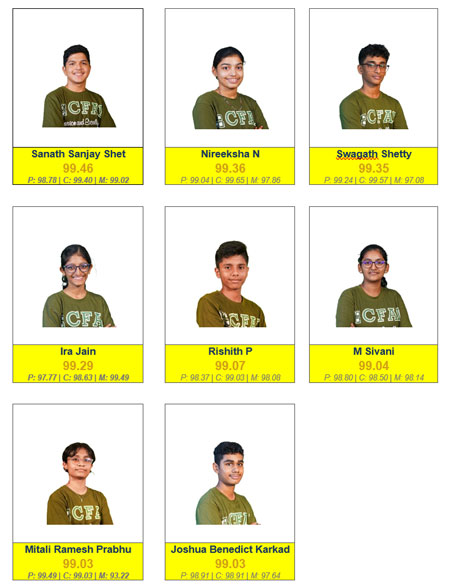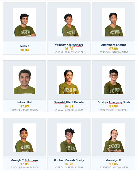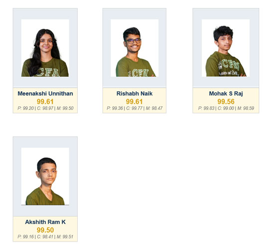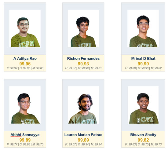 Multi-subject mastery across the top tier: CFAL’s topper A Aditya Rao (99.96) scored above 99.8 in all three subjects. Rishon Fernandes scored 99.99 in Chemistry. Lauren Marian Patrao scored 99.94 in Mathematics. Mrinal D Bhat scored 99.90 overall. Six of the top 10 scored above 99.5 in at least two individual subjects. This depth across Physics, Chemistry, and Mathematics simultaneously is the signature of scientific education, not coaching shortcuts.
